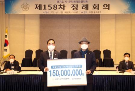 [한국뉴스타임=명기자] 경기도시군의회의장협의회는 11월 18일 화성시에 위치한 호텔 푸르미르에서 제158차 정례회의 및 코로나19 극복 이웃돕기 성금 기탁식을 개최했다.