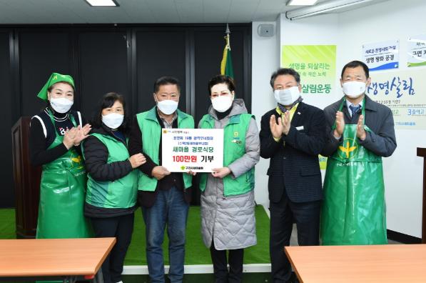 전달식은 새마을회관 경로식당의 첫 운영을 개시한 구리시새마을회관에서 진행되었으며, 이날 정영희 수택2동새마을부녀회 19통 광역부녀회장이 새마을회관 경로식당에 기부금 100만원을 전달하여 이웃사랑 실천에 뜻을 보탰다.
