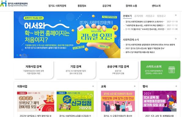 이번 홈페이지 개편은 ▲공공구매 전용관 신설 ▲사회적경제기업 및 지원사업 현황보기 ▲31개 시·군별 사회적경제 정보 제공 등에 중점을 두어 경기도사회적경제 활용도을 높이고자 했다.