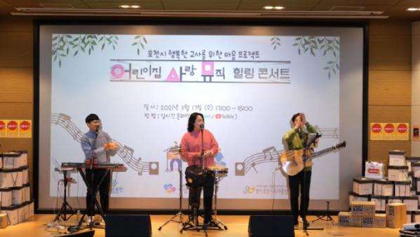[한국뉴스타임=명기자] 포천시육아종합지원센터는 지난 17일 포천시립중앙도서관에서 코로나19로 변화된 양육환경에도 묵묵히 최선을 다해 보육 현장을 지키고 있는 보육교직원에 대한 감사와 위로의 마음을 담아 ‘어린이집-사랑-뮤직 LIVE 힐링콘서트’를 개최했다.