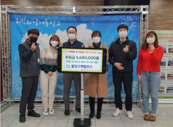 [한국뉴스타임=명기자] 한수원 팔당수력발전소는 지난 18일 난방 취약계층을 위한 ‘따뜻한 온기 드림! 겨울 난방 연료 나눔 사업’과 관련해 후원금 668만 원을 남양주시복지재단 남부희망케어센터에 기탁했다.