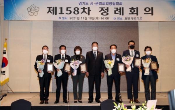 (사)전국지역신문협회 경기도협의회는 지난 18일 화성시에 위치한 호텔 푸르미르에서 열린 경기도 시 · 군의회의장협의회 제158차 정례회의에서 하남시의회 방미숙 의장 등 6명의 시・군의회 의장에게 지방자치 의정대상을 수여했다.