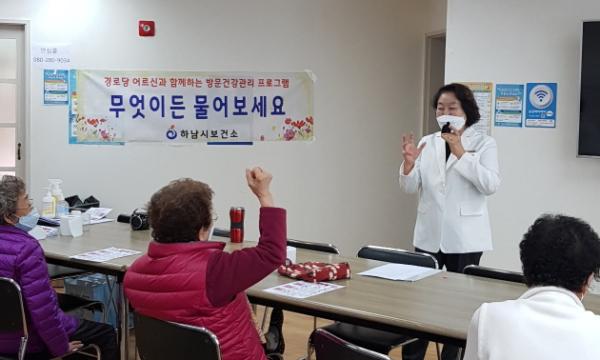 보건소 구강보건실과 연계해 올바른 잇솔질 교육, 의치 관리 등 노인구강관리 교육도 병행하고 있다.