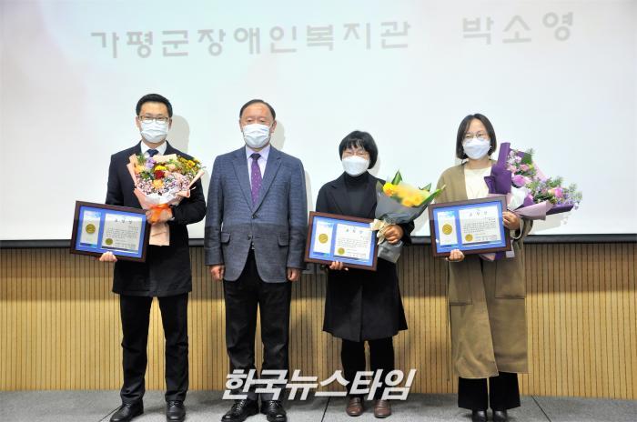 또한 모범직원 표창에 이규관 (가평군노인복지관), 엄지혜 (청평노인복지관), 박소영 (가평군장애인복지관), 김건옥 (조종어린이집) 씨가 수상하였다.