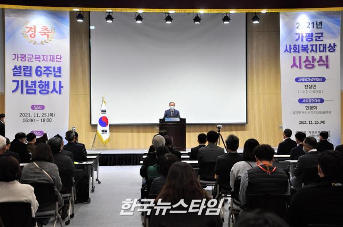 [한국뉴스타임=이명수기자] 25일 오후 4시 재단법인 가평군복지재단, 법인 설립 제6주년 기념식이 청평호반문화체육센터에서 개최되었다.