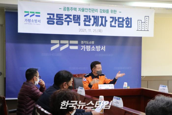 [한국뉴스타임=이명수기자] 25일 가평소방서(서장 구본현)는 본서 2층 소회의실에서 공동주택 관계자를 초청하여 자율안전관리 강화를 위한 관계자 간담회를 개최했다고 밝혔다.