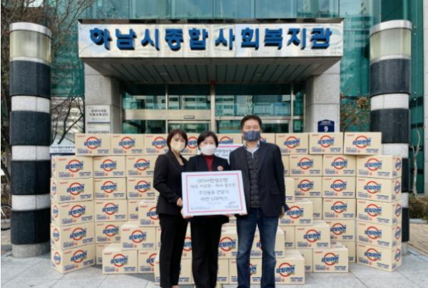 [한국뉴스타임=명기자] 하남시 소재 ㈜SH한성소방 이승헌 대표와 장수진 이사는 하남시종합사회복지관을 방문하여 코로나19로 어려움을 겪는 취약계층 이웃을 위해 전달해 달라며 라면 100박스를 후원 하였다.