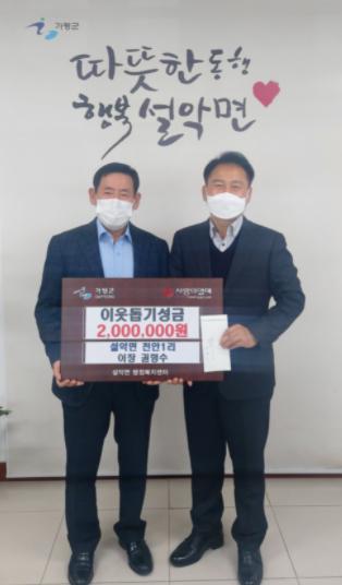 기탁된 성금은 경기사회복지공동모금회를 통해 설악면 관내 거주하는 저소득층에게 전달될 예정이다.
