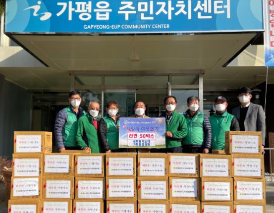 [한국뉴스타임=명기자] 11월 24일 새마을지도자 가평읍협의회는 관내 어려운 이웃을 돕기 위해 가평읍 행정복지센터에 라면 50박스를 기탁했다.