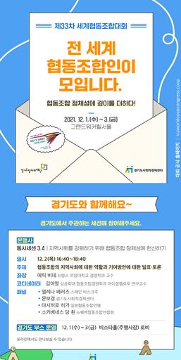 이번 대회는 국제협동조합연맹(ICA) 주최로 12월 1일부터 3일까지 서울 워커힐호텔에서 ‘협동조합 정체성에 깊이를 더하다’라는 주제로 개최된다. 경기도가 한국파트너로 참여하며, 경기도사회적경제센터가 대회 온라인 중계를 지원하고 오프라인 홍보부스를 운영한다.