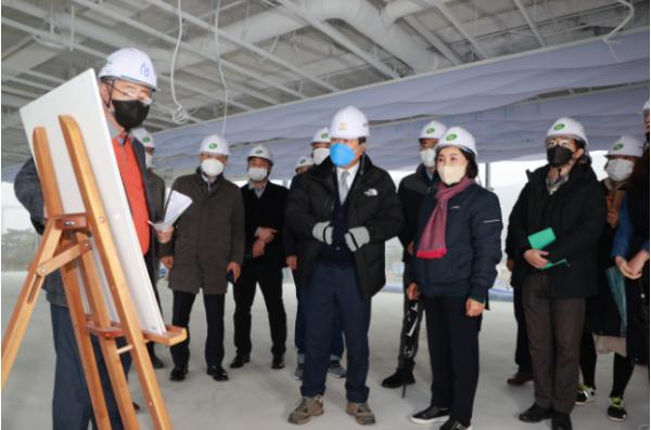이날 현장 점검은 컨퍼런스 센터로 이용 예정인 별관동의 외관 디자인 및 실내 마감재 처리 상황을 확인하고 관계자들과 의견을 나누기 위해 진행됐다.