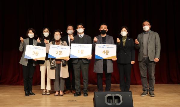 경기도는 30일 경기도인재개발원 대강당에서 ‘제3회 새로운 경기 제안공모 2021’ 본선을 개최한 결과 ▲1등 장재훈·박종환씨의 ‘3기 신도시 등 대규모 택지 조성 시 어린이 안전통학로 확보 방안’ ▲2등 박미현·강동현씨의 ‘저금리시대, 현행 경기도 공동주택 관리비 고율의 연체요율 가산금 부과방식 개선 제안’ ▲3등 남상우씨의 ‘경기도 실내사격장 안전보행로 및 위험공간 색띠 표시’ ▲4등은 정순식씨의 ‘도청 소식을 카카오스토리 채널 개인 계정 타임라인으로 공유서비스 추가’ 제안이 차지했다고 밝혔다.