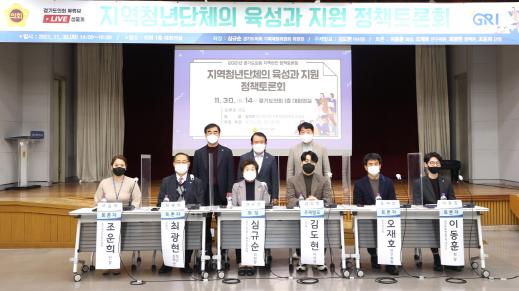 경기도의회와 경기연구원이 공동주최한 이번 토론회는 청년세대의 지역사회 참여 모색과 청년단체 육성과 지원의 정책방향에 대해 논의하는 자리로 경기도의회 유튜브 채널로도 생중계됐다.