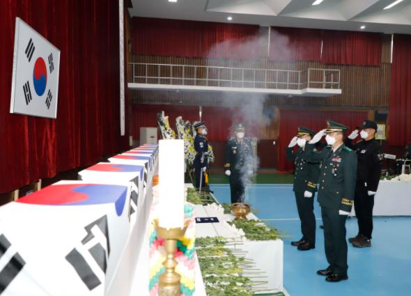 [한국뉴스타임=명기자] 육군 6군단은 지난 30일 경기도 포천시 군단 사령부에서 6·25 전사자 발굴유해 합동 영결식을 열었다.