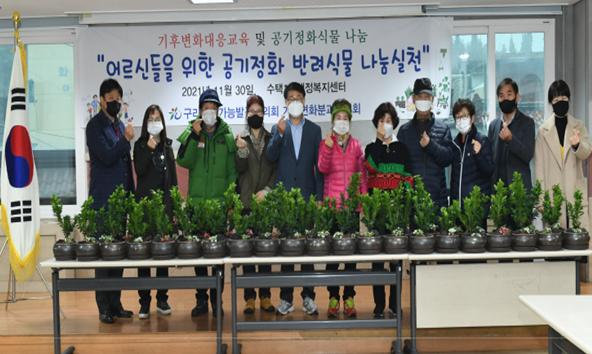 [한국뉴스타임=편집국] 구리시 지속가능발전협의회는 지난 11월 30일 수택1동, 수택2동 행정복지센터에서 ‘어르신들을 위한 공기정화 반려식물 나눔’ 전달 행사를 가졌다.