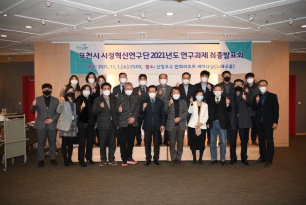 시정혁신연구단은 총 5개 분과로 구성되어 있으며, 이날 '시정혁신 및 분권' 분과는 안전한 마을 조성 방안을, '경제 및 일자리 분과'는 고교 졸업 후 사회초년생 지원 방안을, '보건 및 복지 분과'는 포천시 외국인 정착 1번지 구축 방안을, '문화·관광·교육 분과'는 포천시 관광지 활성화 방안을, '도시계획·도시재생 분과'는 역사문화유산 보존 및 활용을 통한 도시재생 방법과 사례 연구를 주제로 연구과제를 발표했다.
