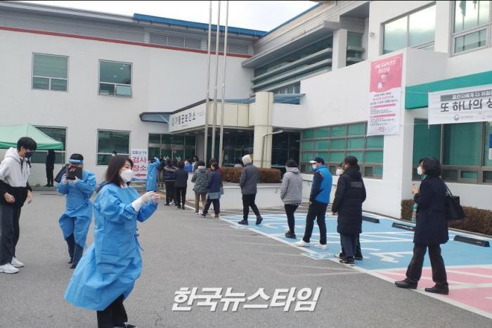 이러한 사실이 지역에 전해지자 가평군보건소 선별진료소에는 긴 대기줄이 이어지고 있다.