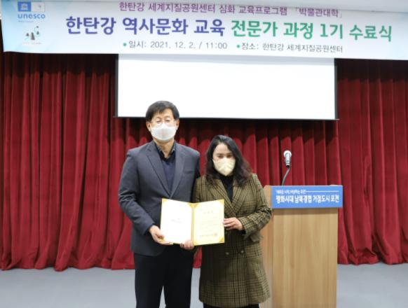 [한국뉴스타임=편집국] 포천시 한탄강 세계지질공원센터는 지난 2일 박물관대학 ‘한탄강 역사문화 교육 전문가 과정’ 1기 수료식을 개최했다.