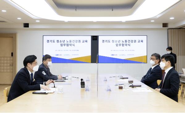 경기도는 3일 경기도청에서 일터건강을 지키는 직업환경의학과 의사회, 경기도평생교육진흥원과 이런 내용을 담은 ‘경기도 청소년 노동건강권 교육’ 업무협약을 체결했다. 협약식에는 오병권 경기도지사 권한대행, 강희태 직업환경의사회장, 김제선 경기도평생교육진흥원장 등이 참석했다.
