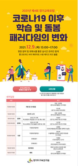 [한국뉴스타임=편집국] 경기도교육연구원은 오는 9일 오후 3시 '코로나19 이후 학습 및 돌봄 패러다임의 변화'를 주제로 2021년 제4회 경기교육포럼을 개최한다.