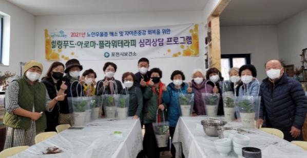 포천시자살예방센터와 연계 진행한 이번 프로그램은 푸드테라피, 반려식물 가꾸기, 아로마테라피, 플라워테라피 등 다양한 소재를 활용해 24명의 어르신들에게 자신을 소중히 여기며 희망을 담을 수 있는 시간을 제공했다.