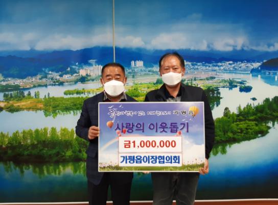 [한국뉴스타임=편집국] 가평읍 이장협의회는 오늘 7일 각 마을 이장들의 마음을 모아 성금 백만원을 가평읍 행정복지센터에 기탁했다.