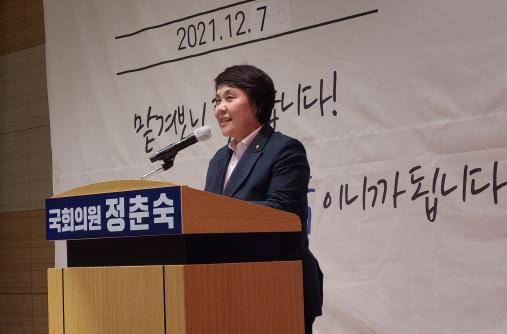 [한국뉴스타임=편집국] 더불어민주당 정춘숙 의원(경기 용인시병·재선)이 12월 7일 21대 개원 이후 의정활동 성과를 지역주민들에게 보고하는 온라인 의정보고회를 개최했다.