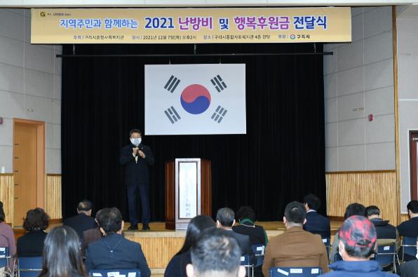 [한국뉴스타임=편집국] 구리시는 7일 구리시종합사회복지관(관장 이상희)에서 소외계층의 따뜻한 겨울나기를 위하여 모금한 난방기금을 지역 내 소외계층 100세대에 전달하는 ‘2021 난방비 및 행복후원금 전달식’을 가졌다.