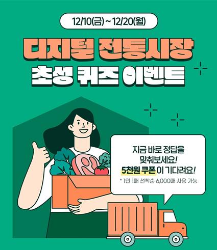 경기도주식회사는 디지털 전통시장 사용 장려 및 홍보를 위해 오는 10일부터 20일까지 배달특급 애플리케이션을 통해 ‘디지털 전통시장 초성 퀴즈 이벤트’를 진행한다고 9일 밝혔다.