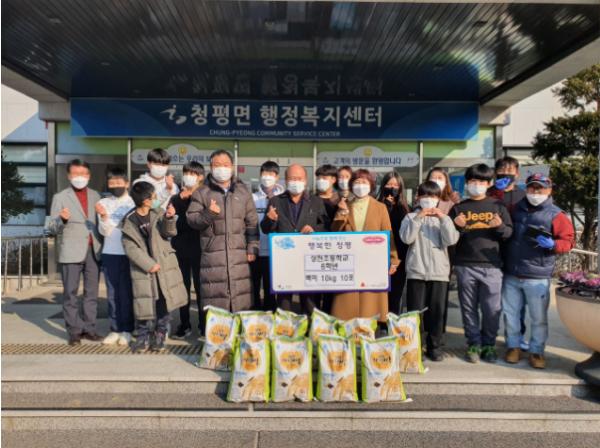 이번 기탁은 코로나로 인해 학생들이 원격 수업을 대면 수업과 병행하는 와중에 학교 주변 유휴지를 이용하여 직접 농사지은 쌀을 청평면 행정복지센터에 기탁하였다.