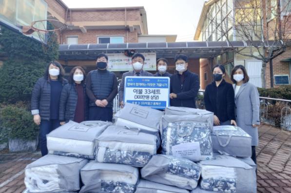 [한국뉴스타임=편집국] ㈜박홍근홈패션는 지난 8일 신북면에 소재한 가나안의 집(시설장 허현숙)과 소흘읍 저소득 중증 시각장애인 8가구에 전달해 달라며 이불 33채(300만원 상당)를 소흘읍에 기탁했다.