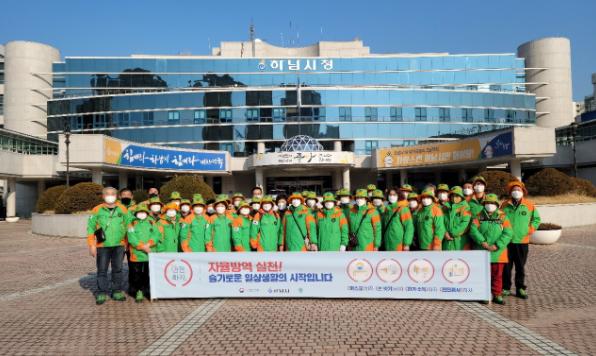 [한국뉴스타임=편집국] 하남시 지역자율방재단은 지난 7일 시청 사거리에서 60여명의 단원들이 모여 자율방역 캠페인을 실시했다고 밝혔다.