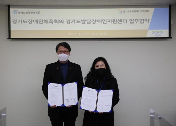 이 자리에는 김민영 경기도 발달장애인센터장과 오완석 경기도 장애인체육회 사무처장이 함께해 협약서에 서명했다.