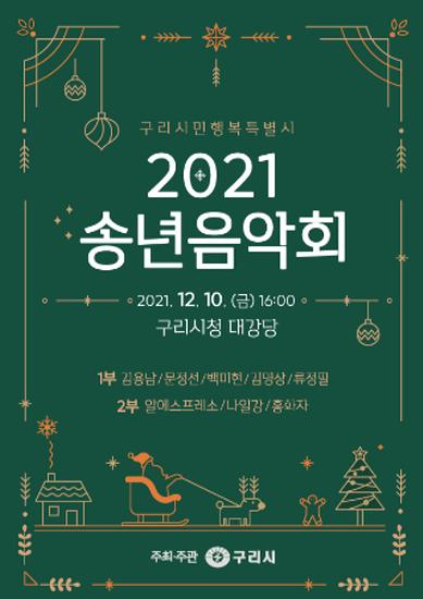[한국뉴스타임=편집국] 구리시가 10일 오후 4시 시청 대강당에서 다사다난했던 2021년 한해를 마무리하기 위해 ‘2021 송년음악회’를 개최한다.