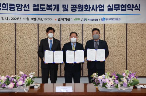 [한국뉴스타임=편집국] 남양주시는 9일 국가철도공단, 경기주택도시공사와 다산지금 공공주택지구 내 경의중앙선 철도복개 및 공원화 사업의 성공적 추진을 위한 실무 협약을 체결했다.