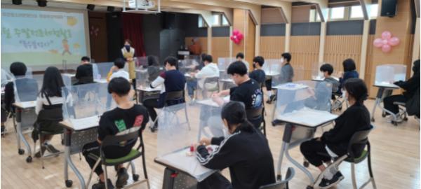 이번 진로 체험활동은 특수분장사 직업에 대한 소개와 종류, 업무 등 기본적인 이론과 베인 상처, 좀비에 물린 상처, 화상 표현 등 특수분장 기초실습 및 시연을 실시했다.