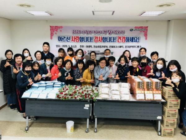 이날은 천송이플라워`N(대표 조병익) 카네이션 후원과 린제이코스매틱(대표 유희숙), 아셀떡(대표 김명진), 경기광역푸드뱅크 지원으로 노인맞춤돌봄서비스 생활지원사들이 직접 만든 생화 카네이션과 마스크팩, 떡, 치약 등 감사키트를 구성해 전달했다.