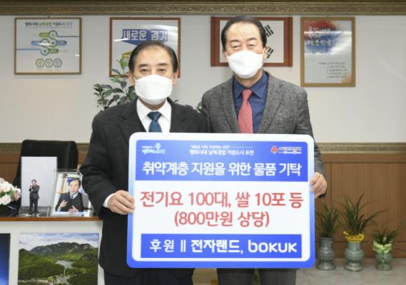 [한국뉴스타임=편집국] 포천시는 지난 15일 전자랜드에서 전기요 100대와 쌀 100kg(800만원 상당)를 사회복지공동모금회를 통해 기탁했다고 밝혔다.
