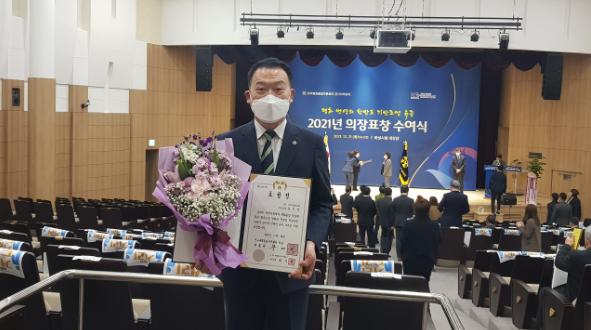 [한국뉴스타임=편집국] 경기도의회 농정해양위원회 김인영 위원장(더불어민주당, 이천2)이 21일 화성시청 대강당에서 개최된 ‘민주평화통일자문회의 의장 표창’을 수상하였다.