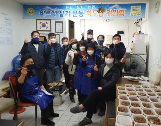 [한국뉴스타임=편집국] 바르게살기운동 남양주시협의회 화도읍위원회는 23일 홀로 사시는 어르신들이 한 해를 잘 마무리하고 2022년을 건강하고 활기차게 맞이할 수 있도록 ‘독거노인 반찬 나눔 봉사’를 실시했다.