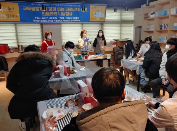 전교생이 코로나19 예방 접종 및 선제검사를 통해 만났던 코로나19 영웅들이 성탄절도 가족과 함께 못하는 안타까운 마음에 학생들이 자발적으로 직접 만든 간식과 감사 편지를 준비했다.