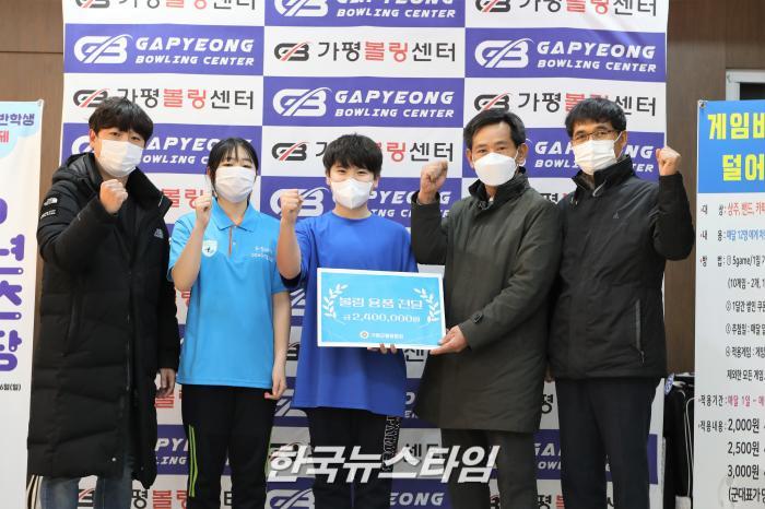 [한국뉴스타임=편집국] 가평군볼링협회(회장 양운우)는 관내 엘리트 체육 육성을 위하여 가평읍에 소재한 가평볼링센터에서 볼링용품 전달식을 가졌다.