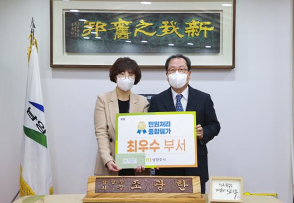 [한국뉴스타임=편집국] 남양주시는 27일 '2021년 민원처리 종합평가' 우수 부서·직원및 '2021년 하반기 친절공무원' 선정자에게 표창장과 부상을 전수했다.