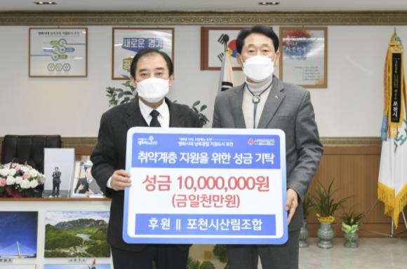 [한국뉴스타임=편집국] 포천시는 지난 24일 포천시산림조합에서 취약계층 지원을 위해 포천사랑 희망나눔 이웃돕기 성금 1,000만원을 경기사회복지공동모금회에 기탁했다고 밝혔다.