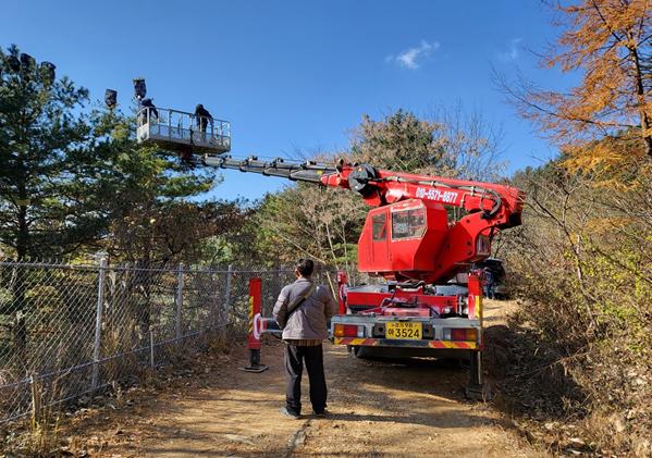 이에 연구소는 가평 내 잣나무에서 소나무허리노린재가 언제쯤부터 잣송이에 발생하는지를 밝히기 위해 무려 15m가 넘는 잣나무 꼭대기까지 올라 카메라를 설치하고 면밀한 조사 활동을 벌이기 시작했다.