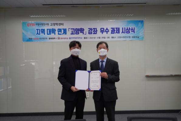 [한국뉴스타임=편집국] 재단법인 고양시정연구원(원장 정원호)은 28일, 빛마루방송지원센터 2층 대회의실에서 '지역 대학 연계 ‘고양학’ 강의 지원 사업'우수 과제 시상식을 개최하였다.