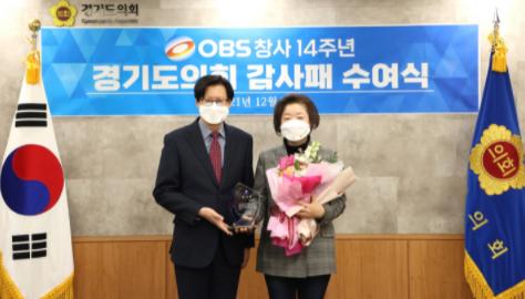 [한국뉴스타임=편집국] 경기도의회 문경희 부의장(더민주, 남양주2)은 29일, OBS언론사로부터 감사패를 받았다.