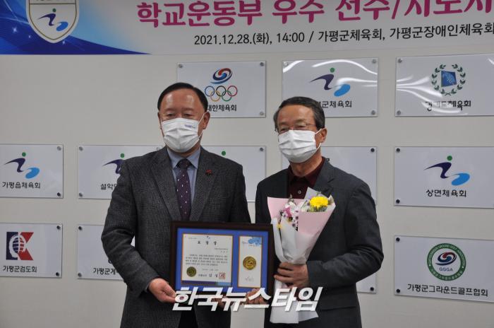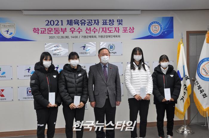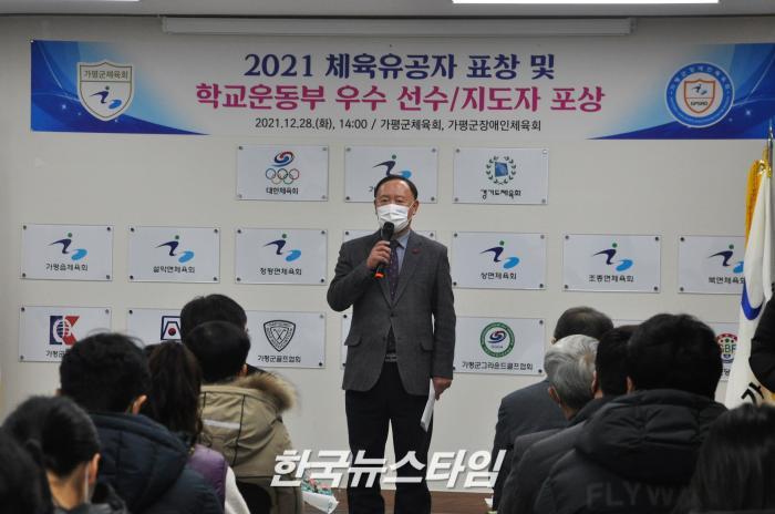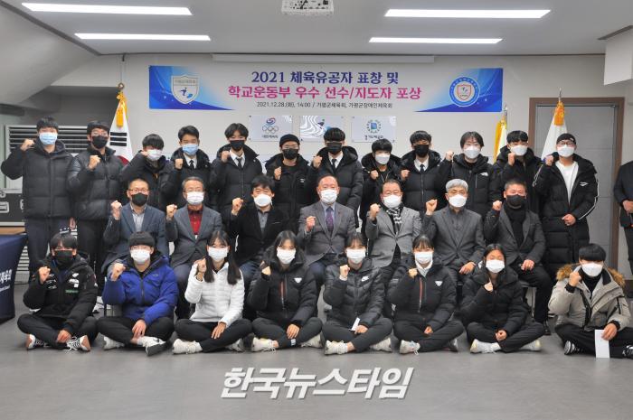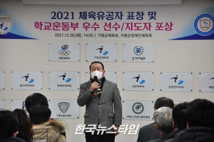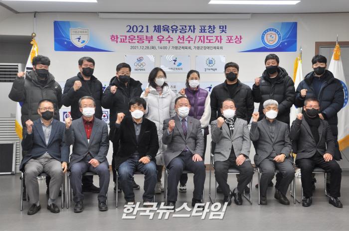 [한국뉴스타임=이명수기자] 28일 가평군체육회(회장 지영기)는 2021년 가평군 체육유공자 표창 및 학교운동부 우수 선수 입상 포상 수여식을 개최하였다.
