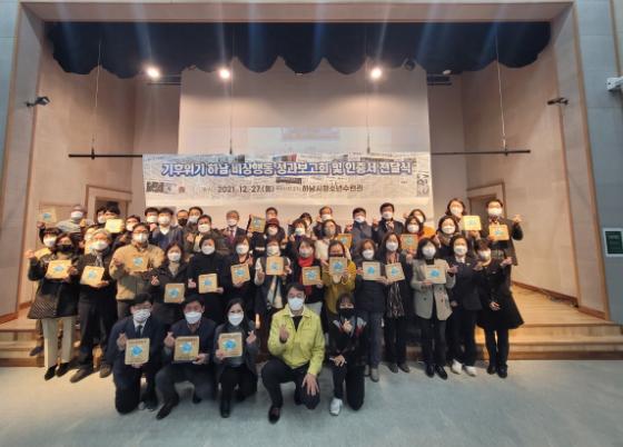 [한국뉴스타임=편집국] 기후위기 하남비상행동은 지난 27일 하남시 청소년수련관에서 2021년 성과발표회와 인증서 전달식을 가졌다.
