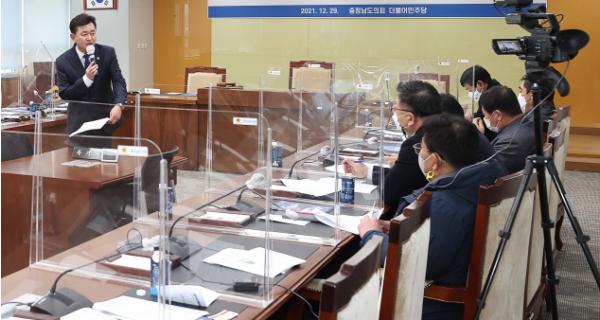 박근철 대표의원은 이날 의원총회장에서 충청남도의회 더불어민주당 의원들에게 교섭단체 필요성, 교섭단체 운영, 교섭단체 권한 확대의 필요성에 대해 경기도의회 더불어민주당의 사례를 들어 설명했다.